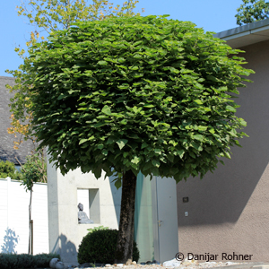 Breit auswachsender Baum mit einer flachen, kugelförmigen, dicht verzweigten Krone. Höhe 4-6 m. Grosses, hellgrünes Blatt. Keine Blüten. Schnittverträglich. Besonders geeignet für kleine Gärten und Auffahrten. Bevorzugt einen vor Wind geschützten Standort.